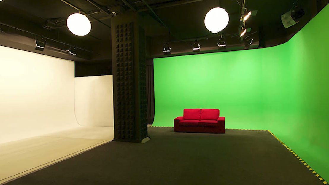 Estudio de grabación que dispone de ciclorama blanco y chroma verde. Permite diferentes configuraciones que facilitan cualquier producción de video: corporativos, ficción, falsos directos, directos en streaming, incrustación en vivo, entrevistas, grabación de escenas con sets personalizado, etc.